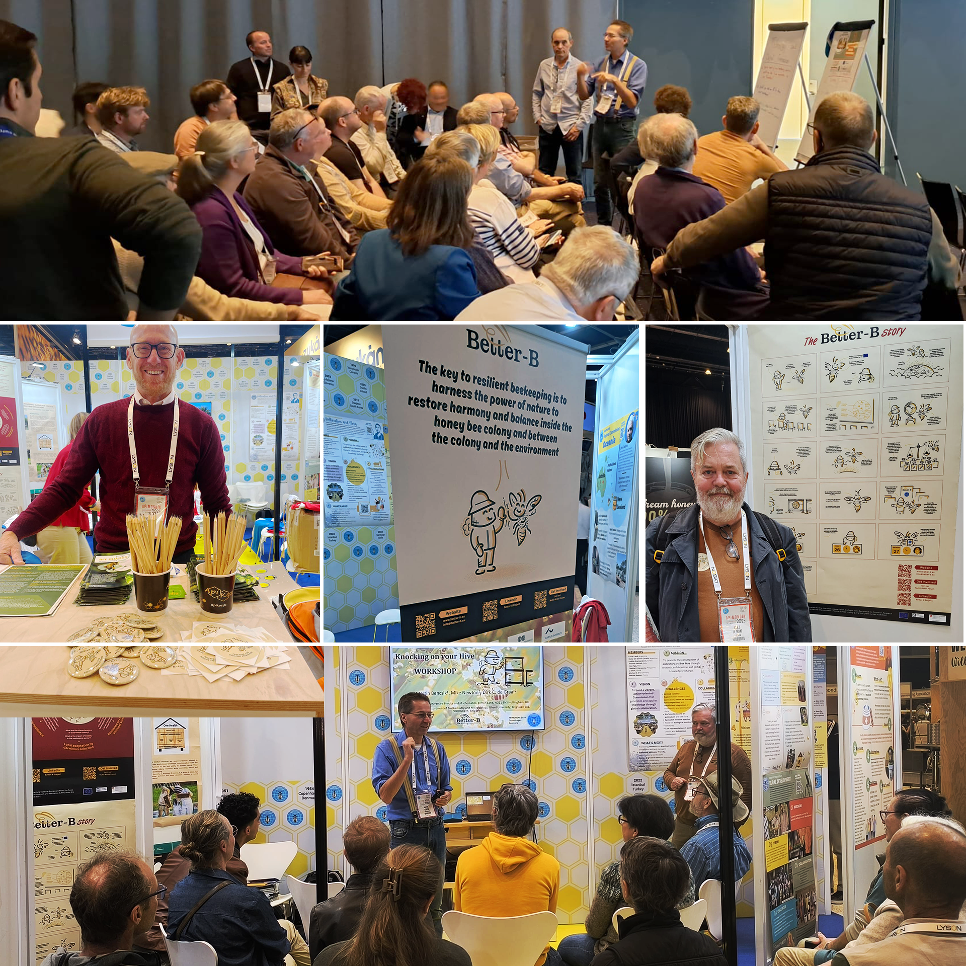 APIMONDIA 2025 wrapped up last weekend with the World Café on resilient beekeeping and plenty of other Better-B related activities. Below are a few more snapshots: the World Café (top picture), the Better-B booth, and the demonstrations that took place there (bottom picture).